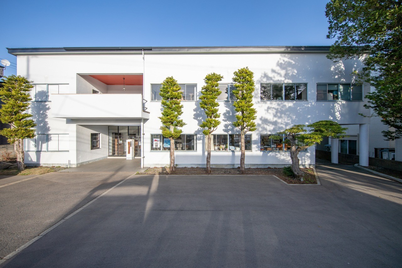 外観はコンクリート打ち放しで、木板の型枠の跡がコンクリートにはっきり残っている。前川が今まで建築した建物の凍害を教訓に、凍害に負けない建物に挑戦した。窓を壁面よりも奥に配置することで、積雪に対応している。