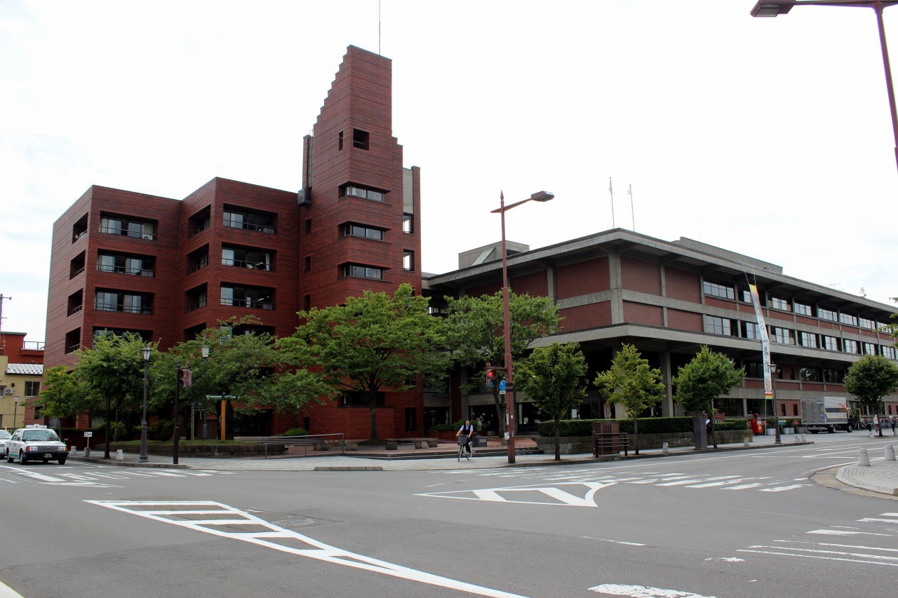 鉄筋コンクリート打ち放しの柱、外壁にはレンガブロックを積み、城下町の風情を壊さないよう高さを抑え街並みとの調和が図られた。正面玄関の真上には群青色、本館の階段正面には赤色が施されているほか、3階ロビーは広々としたつくりで光が差し込み、開放的な空間になっている。2015年、本館が国登録有形文化財に登録。