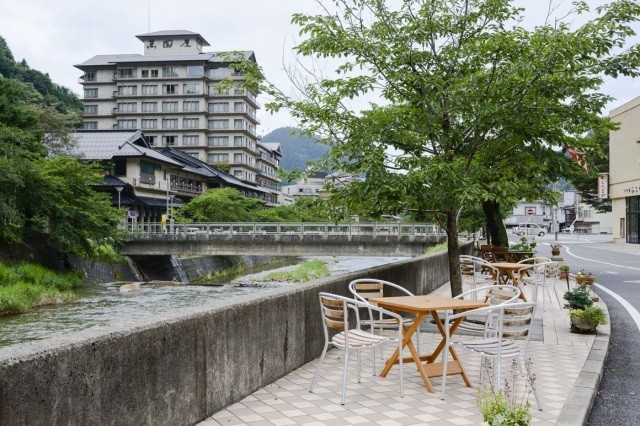 温泉街には、地元の方に親しまれている共同浴場、川沿いや温泉街の真ん中に位置する足湯、体の中でも温泉を楽しめる飲泉所、温泉の鎮守神が祀られる温泉神社、約90種3000本ものバラが次々と咲くばら園など立ち寄りスポットが点在しています。お茶を飲みながら足湯に浸かれるカフェや川沿いに整備されたウッドデッキなど休憩スポットも充実しているので、街歩きに疲れた場合も安心。全身温泉に浸かるのはもちろん、足だけ浸かるのもよし、飲んでもよしで温泉をたっぷり楽しむことができます。