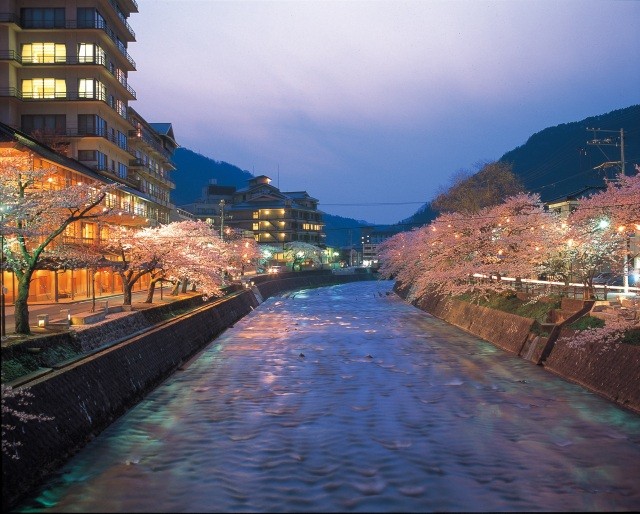 あつみおんせん清流・温海川沿いに栄えた自然溢れるあつみ温泉。川沿いに植えられた約300本の桜が咲き、夜にはライトアップも行われます。川沿いに整備された足湯に浸かりながらゆったりとお花見はいかがですか。初夏には、鮎釣りを楽しむ釣り人で賑わい、秋には、鮭の遡上が目の前で見ることができ、四季ごとに移り変わる温海川を楽しむことができます。
