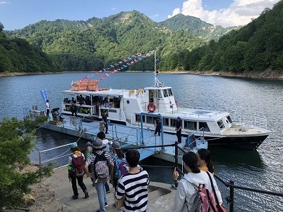 プログラムの特徴は、魚沼市から奥只見湖を船で渡り尾瀬に向かうルートで環境学習を行うことです。湖上では、神秘に満ちた美しい景観を堪能でき、また再生可能な自然エネルギーである水力発電の奥只見ダム開発と自然保護の歴史も学ぶことができます。
