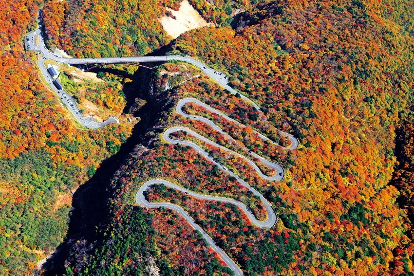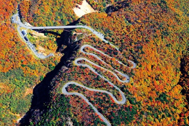 春の「雪の回廊」、初夏の新緑、秋の紅葉と、雄大で変化に富んだ自然の風景を堪能でき、絶景を見に多くの人が訪れる。