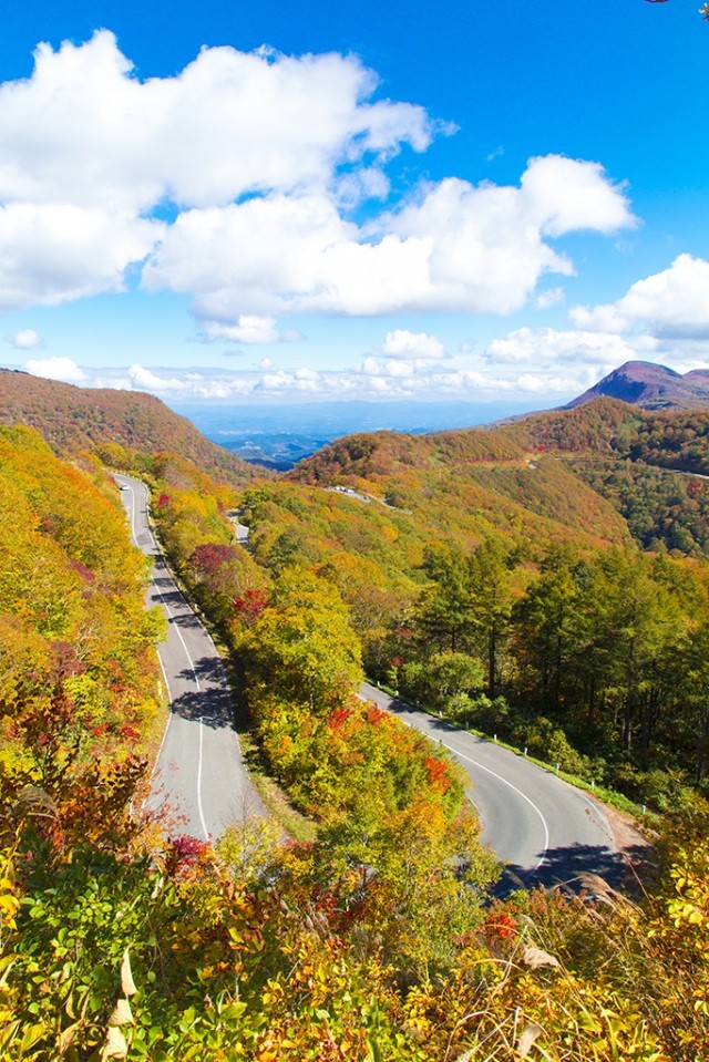高湯温泉と土湯峠を結ぶ、全長約29kmの山岳観光道路で、最高標高1,622m、平均標高1,350mを走るパノラマコースは、まさに”空を走る道”。
