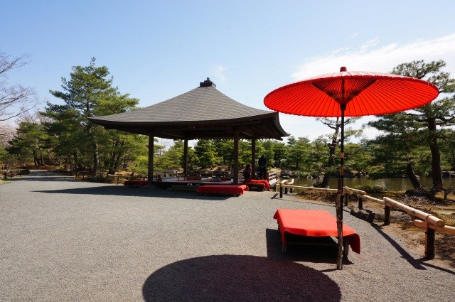 園内には茶亭もあり、抹茶や軽食を楽しむことができる。