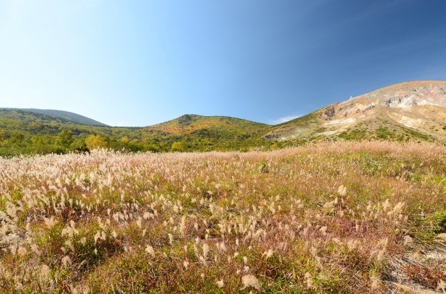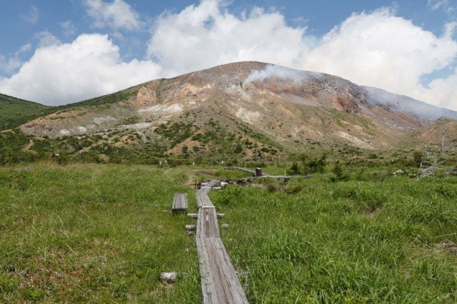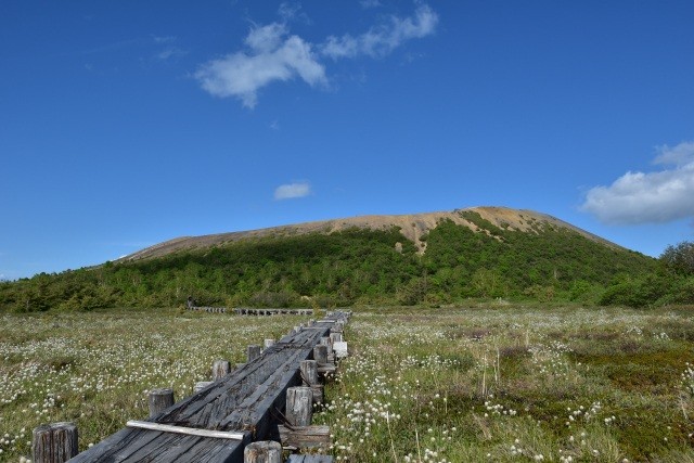 一切経山、吾妻小富士、鎌沼に囲まれたこの湿地帯は、火山礫に覆われた荒々しい山肌をはじめ、沼や池塘を散りばめた湿原、高山植物のお花畑など、変化にとんだ風景が広がっています。