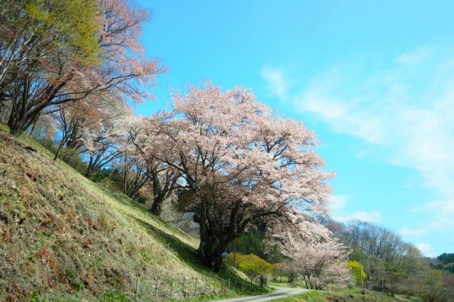 新田の大山桜 しんでんのおおやまざくら ひっそりと佇む一本桜 山間の一本桜で、樹齢は400年以上とも言われ、市指定保存樹に指定されています。赤みを帯びた葉と共に淡紅色の花をつけ、4月下旬〜5月上旬にかけてが見頃になります。 エリア 福島県 いわき カテゴリー 自然・絶景 写真をすべて見る 印刷用ページを見る 写真ダウンロードページへ マイプランに追加 マイプランから削除 基本情報 住所 福島県いわき市三和町下市萱新田地内 アクセス ●車でのアクセス いわき三和ICから約25分 ●公共交通でのアクセス JRいわき駅から車で約50分 駐車場 有り 問い合わせ先 問い合わせ先 いわき市総合観光案内所 電話番号 0246-23-0122 FAX番号 0246-44-6546