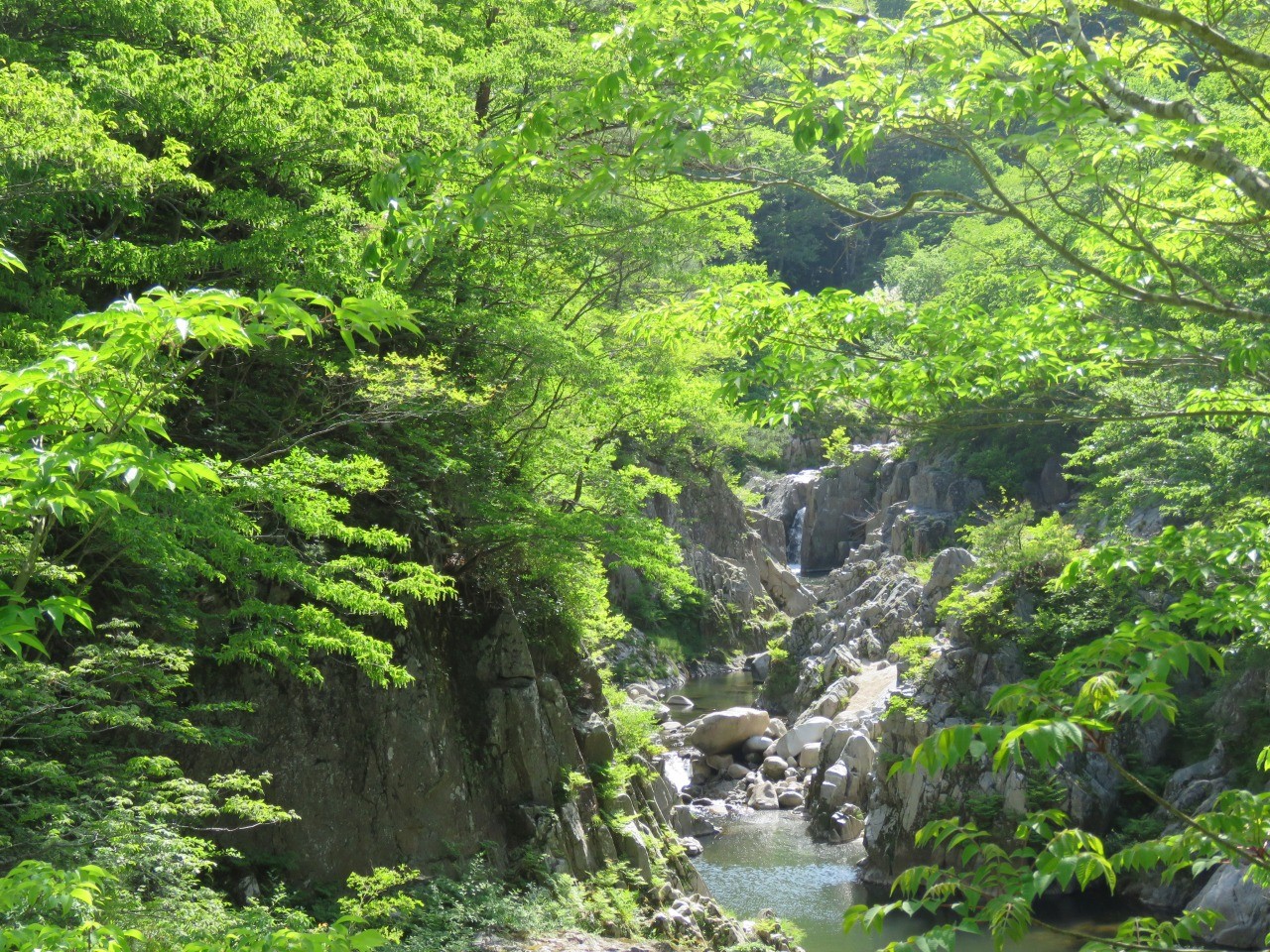 なついがわけいこく清流のせせらぎ、木の葉が風に揺れる音が聞こえる夏井川渓谷は自然の中でリフレッシュできる人気スポット。