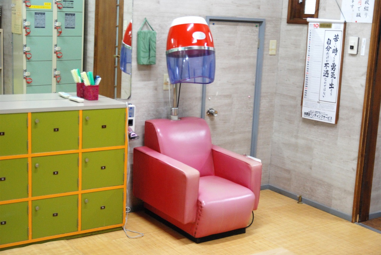 銭湯時代の名残が感じられる大浴場やレトロ感ある50年以上も稼働し続ける鎌形ヘアドライヤー、自動肩たたき機などが昭和な雰囲気を醸し出しています。