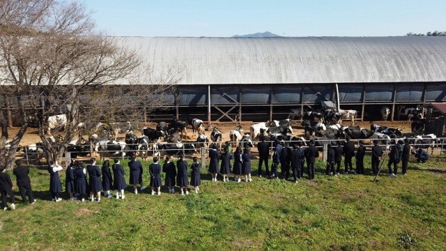 こいわいのうじょうめぐりばすつあーお客様ご利用のバスに農場ガイドが同乗し、普段は非公開の牛舎や国指定重要文化財を巡ります。SDGs17のゴールと照らし合わせながら「環境保全・循環型・持続型」を理念とした130年に及ぶ小岩井農場の歴史と農林業の営みをご紹介し、生産現場を直にご見学いただく事で、持続可能な開発の目標や環境保全について学生・児童の皆様が【自ら探究する】機会にしていただきます。