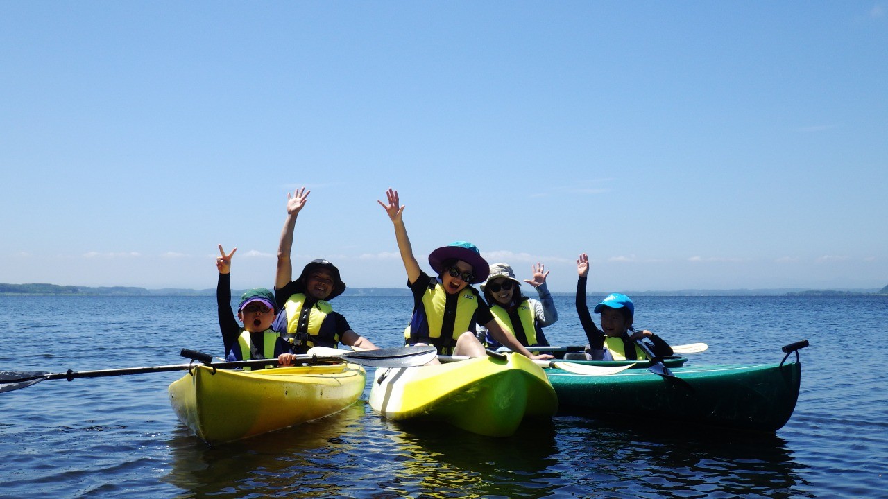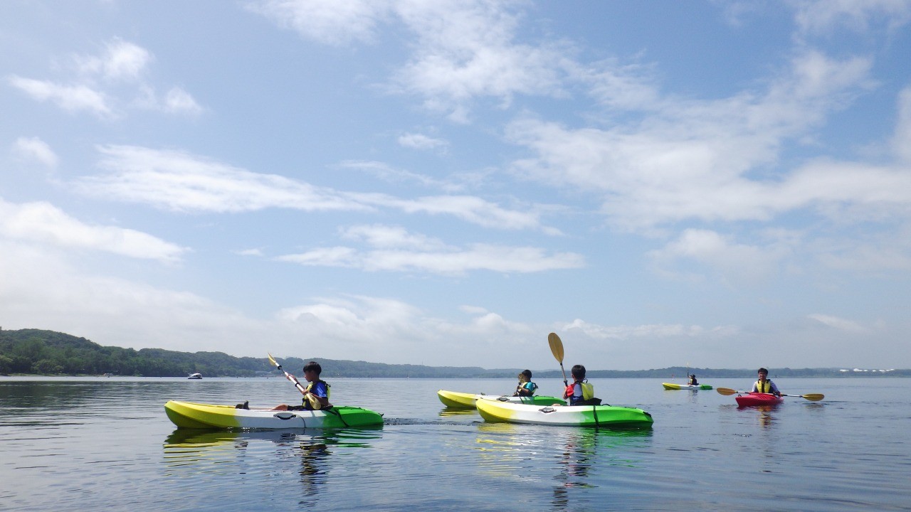 おがわらこかやっくたいけん(おがわらこかやっくらぼ)小川原湖は遠浅でカヤック初心者でも体験しやすい環境です。