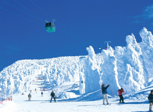 定番の観賞方法は「蔵王ロープウェイ」。山麓線と山頂線の2線を乗り継いで樹氷ができる地蔵山頂へ。スキーやスノーボードをしなくても乗車可能です。