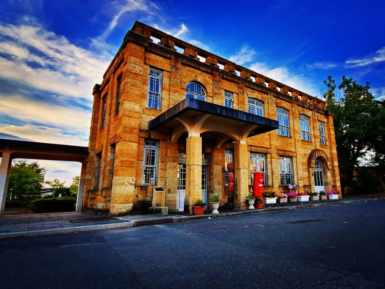 きゅうたかはたえきしゃ(やまがたけんたかはたまち)かつて高畠町には山形交通高畠線という電車が走っており、糠野目駅(現在のJR高畠駅)から二井宿駅間10.6㎞を結んでいた。ほぼ中間に位置する場所に高畠駅が設置されており、現在も「旧高畠駅舎」として建物などが残っている。駅舎は町内の瓜割石庭公園から採掘された「高畠石」を用いて昭和9年に建てられた。同駅には、当時走っていた可愛らしい車両もそのまま展示されている。