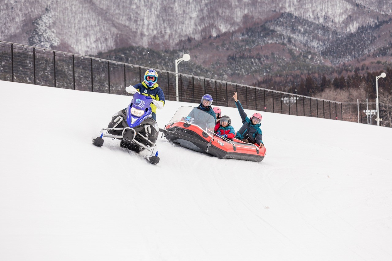 青森の積雪と広大な敷地を活用したスノーアクティビティ(スノースライダー、スノーバナナボート、スノーラフティング、スノーモビル)をお楽しみいただけます。