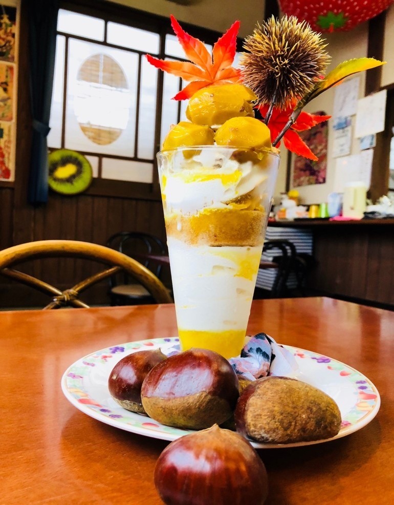 併設のフルーツパーラーでは旬のくだものをたっぷり使ったパフェや夏はかき氷、冬はたい焼きが食べられます。