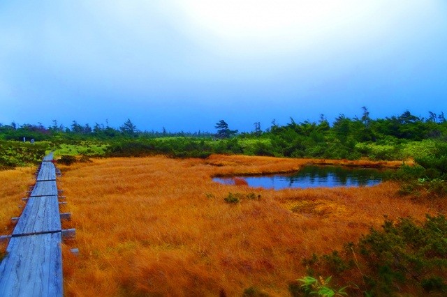 浄土平の湿原風景を代表するのがここ景場平。 大きな池沼が点在する風景が春夏秋と趣を変える