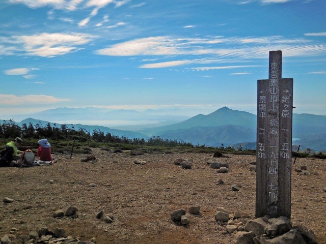 姥ケ原からさらに約60分登ると東吾妻山山頂に到る。 遠く稲苗代湖まで見渡せる絶景!