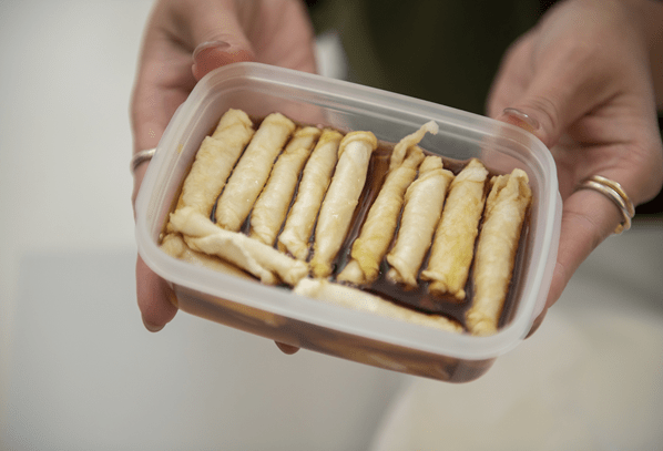からし巻は地域の名物です。干し大根を出汁でふやかし中に辛子を入れて巻いていただく素朴な料理です。お酒の肴にもぴったりです。
