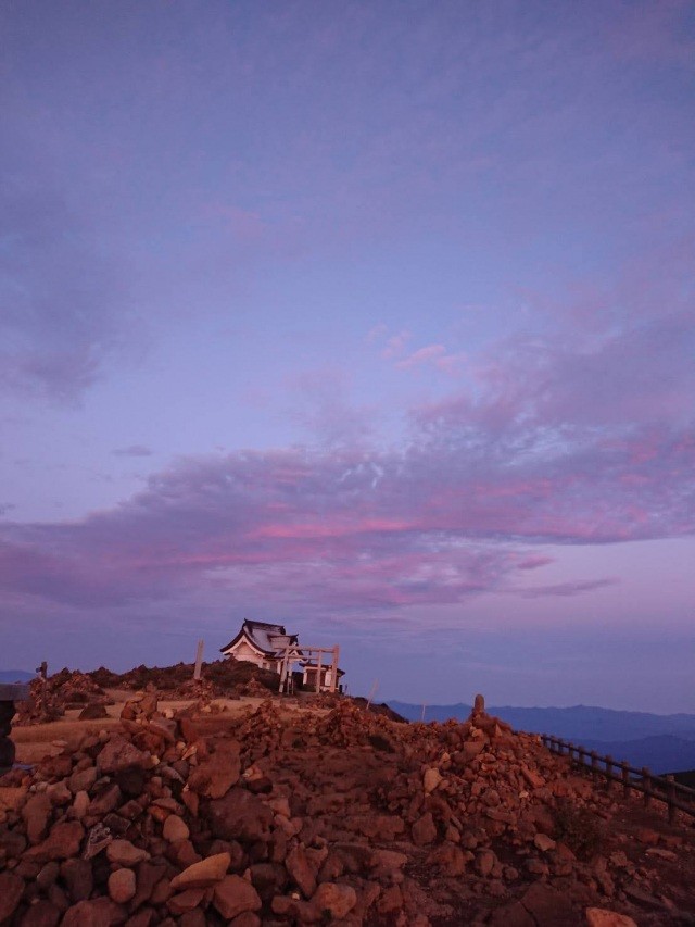 まだ続く暗闇の中、ガイド誘導の下、山頂を目指し出発。ほどなくして、標高約1600mの刈田神社に到着。