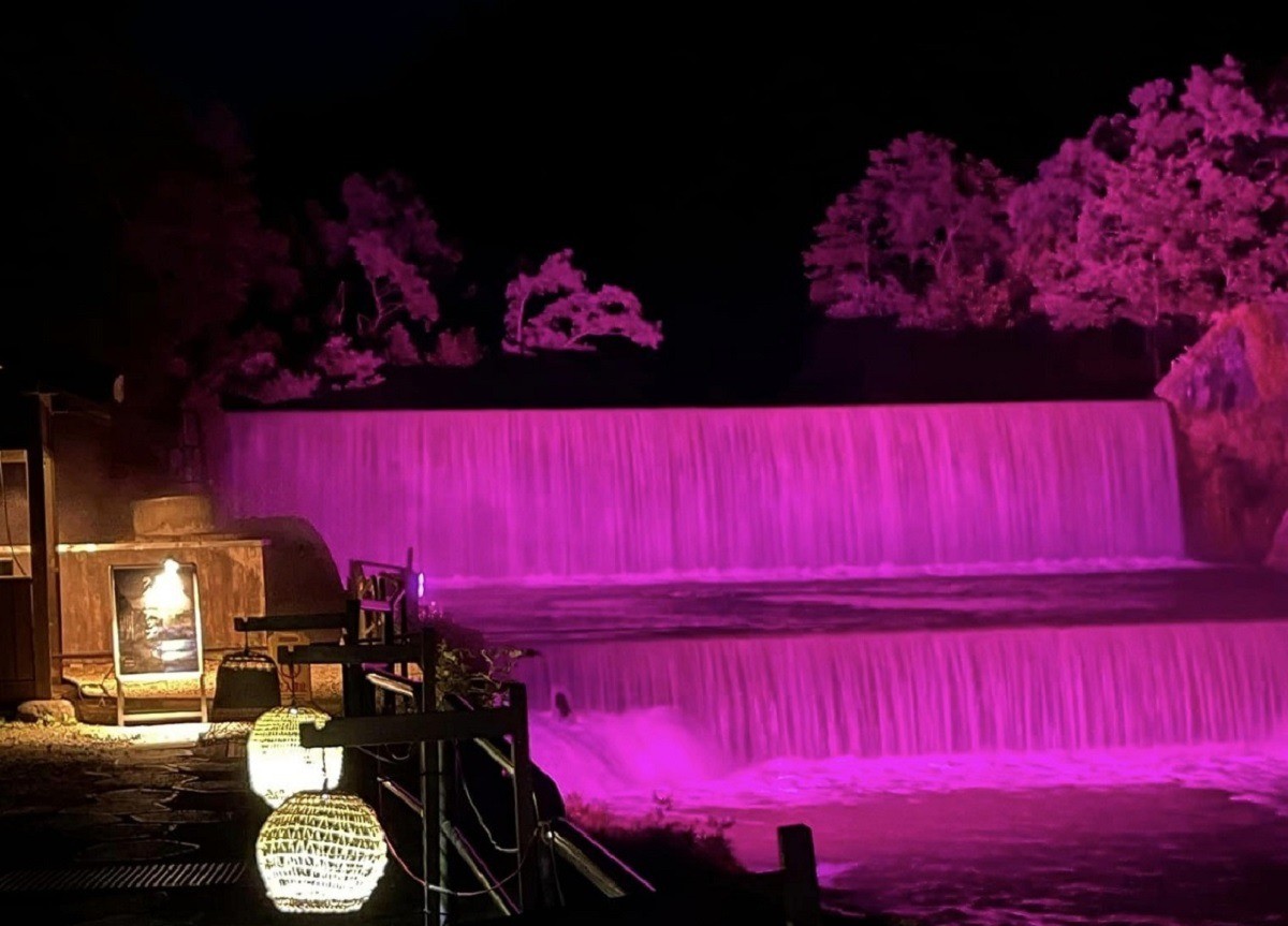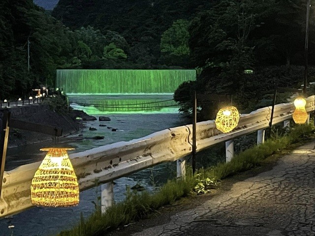 ひじおりだむらいとあっぷ1952年に完成した登録有形文化財の「肘折ダム(肘折砂防堰堤)」が柔らかな灯りでライトアップされます。