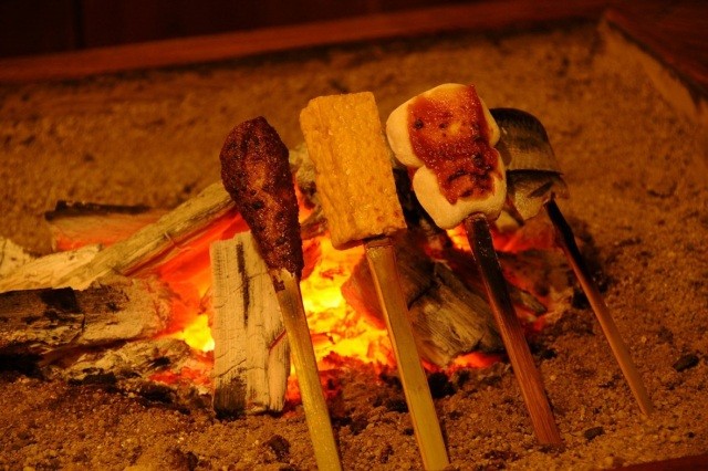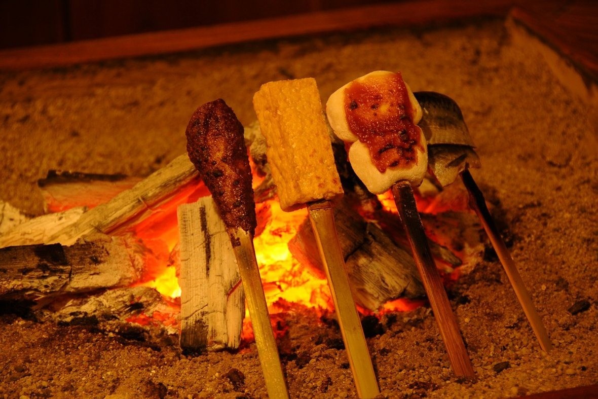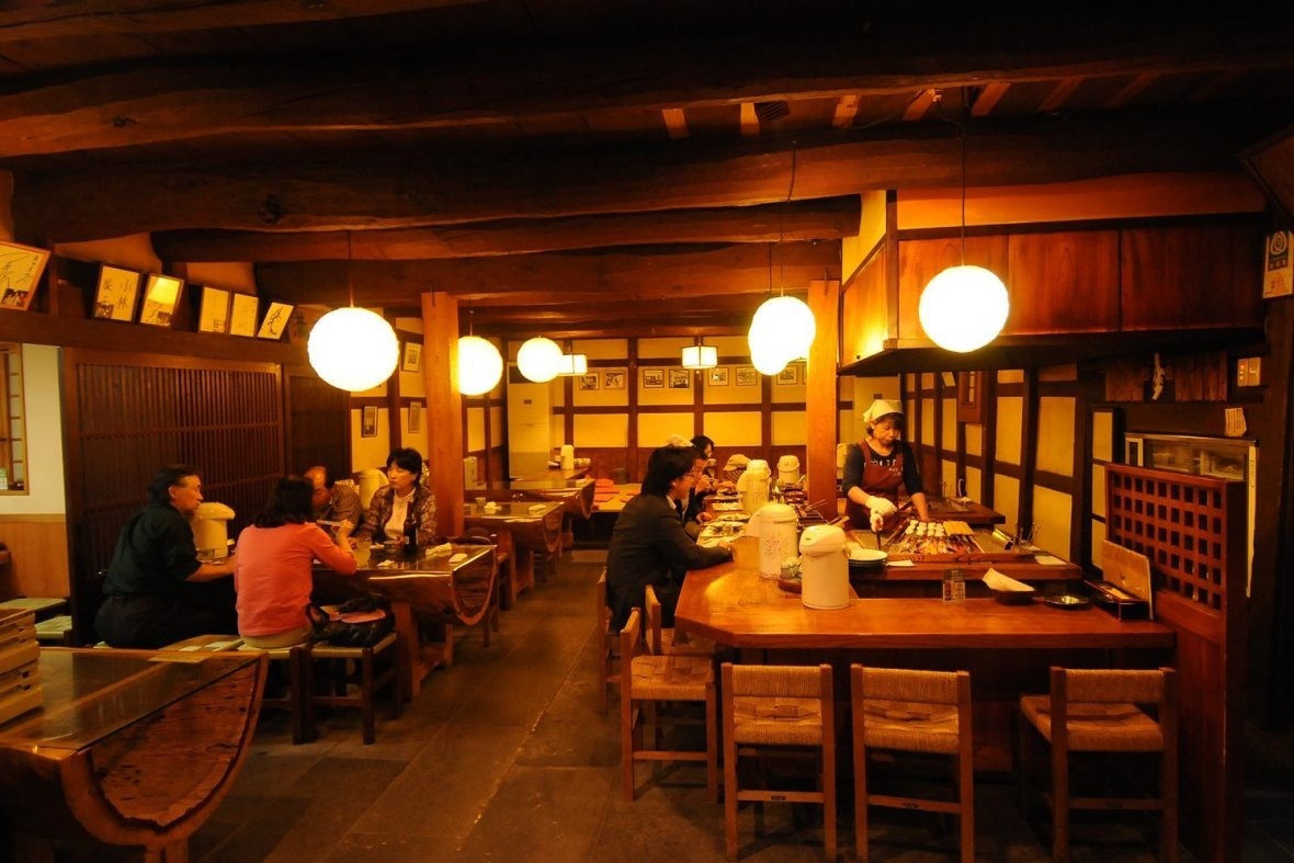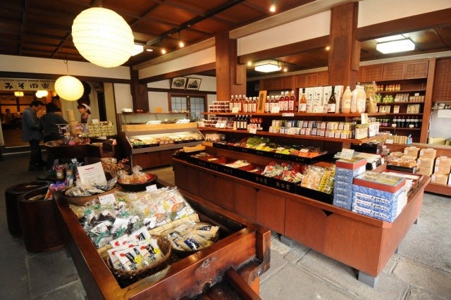 みつたや(あいづのしょくたいけん)店内では香ばしい香りでみそ田楽が焼かれ、こんにゃく、身欠きニシン、椎茸、里芋などを頬張る観光客で賑わっています。田楽とは、そもそもは、田植え等の農耕の儀礼に、笛や鼓を鳴らして唄い舞った日本芸能のひとつ。その白装束の姿が豆腐の串焼きに似ていることから、豆腐に味噌等をつけて焼いたものを「田楽焼」と呼ぶようになりました。会津みそ田楽は赤みそに砂糖といろいろな薬味を練り込んで味付けした味噌だれが特長。囲炉裏の炭火で焼くといくらでも食べられると評判の素朴な懐かしい田舎料理です。また、お土産に人気の手絞り胡麻油・菜種油は伝統的製法「圧搾法」によって製油した一番絞りの純植物油です。煎って爽やかな風味をつけ、圧搾するだけで油分を絞りだして作るので、カロチンや他ビタミン・ミネラルも損なわれず、通常の食用油よりはるかに効用の高い逸品です。他には会津特産の高田梅も人気。果肉が厚く硬質で、良質のクエン酸を豊富に含んだ大粒の梅で独特の酸味と風味がありますのでぜひ試していただきたい味です。