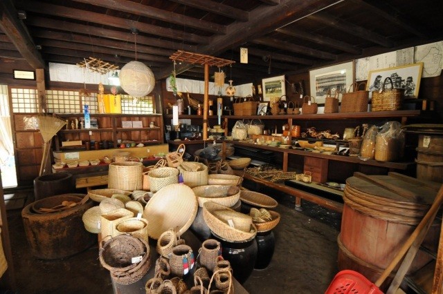 たけとうちゃや(あいづしょうかめぐり)竹藤の創業は1624年(寛永元年)。今の店舗は築後約160年の会津最古の商業建築です。店内に入ると江戸時代にタイムスリップしたような光景。店の中央には荷印の入った暖簾・雪障子戸・帳場・土間・・・・。牛や馬を継いだ柱は特に丸くなり江戸時代の昔を思い出させてくれます。お店のある一之町通りは当時から会津一番の繁華街で、会津の商人は一之町通りに店を出すのが夢だったといわれています。竹籐はその一之町通りで、古い店舗を生かし竹細工、荒物雑貨と店主の製作する会津唐人凧を販売し、地元の人はもとより観光客の方にも長きに渡って喜んでいただいているお店です。真っ赤な舌をだした『会津唐人凧』の製作も体験できます。