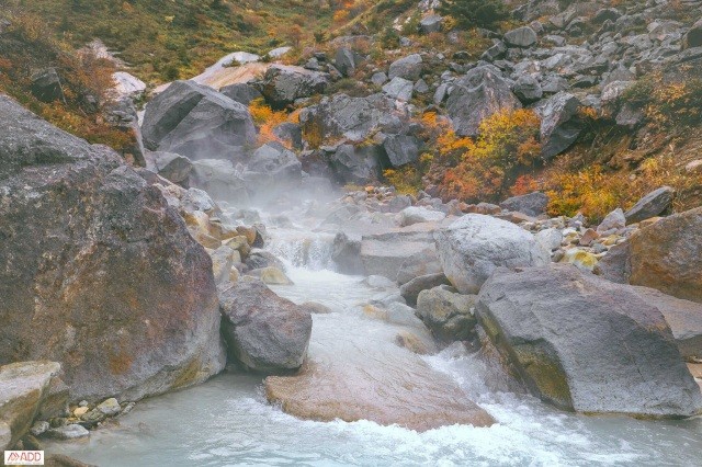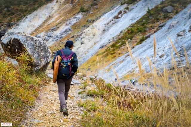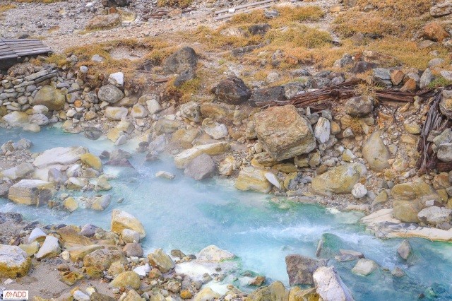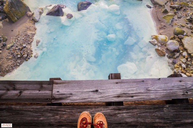 自然が作りだす、周辺の景観は独特な雰囲気で、谷にできた広大な湯畑は圧巻!