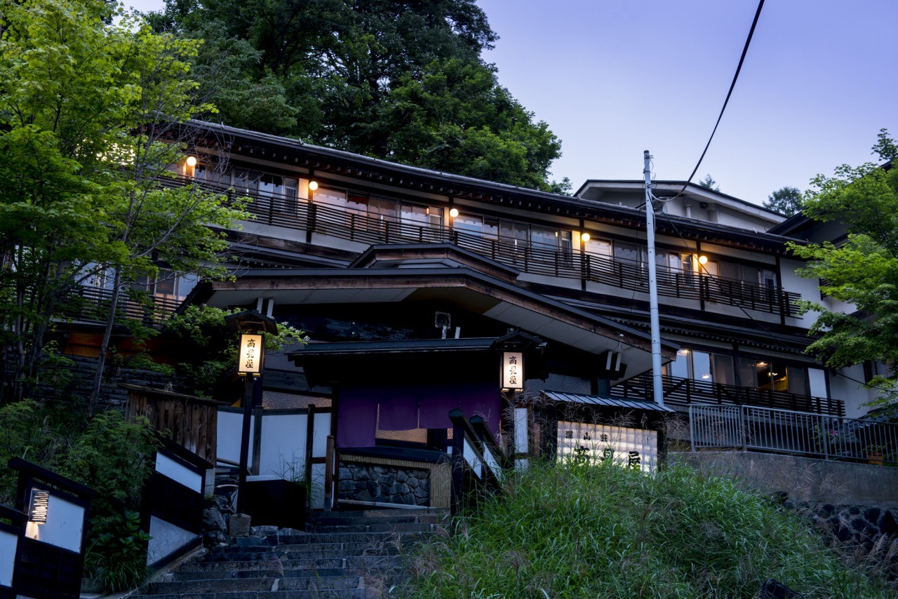 高見屋の名の由来は、高湯通りという温泉街の細い路地のもっとも奥まった高台にある事から名付けられました。その為、玄関までに20段程の石段があり旅宿の前までお車を入れる事が出来ない立地でございます。また、築100年以上の純和風木造建築の為、館内にエレベータはございません。各お部屋に行くまでには、階段をご利用いただく形となります。足の不自由な方は、事前に宿まで確認のご連絡をお願い致します。
