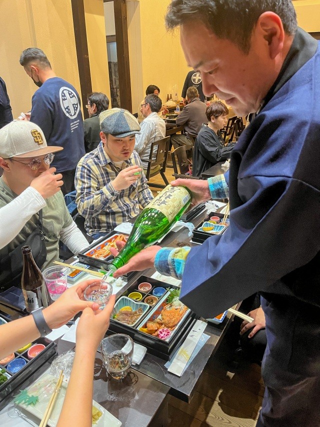 200年以上に渡ってこみせ通りに酒蔵を構え日本酒を作り続けている「鳴海醸造店」の杜氏の解説を聞きながら酒と料理に舌鼓を打つイベントです。