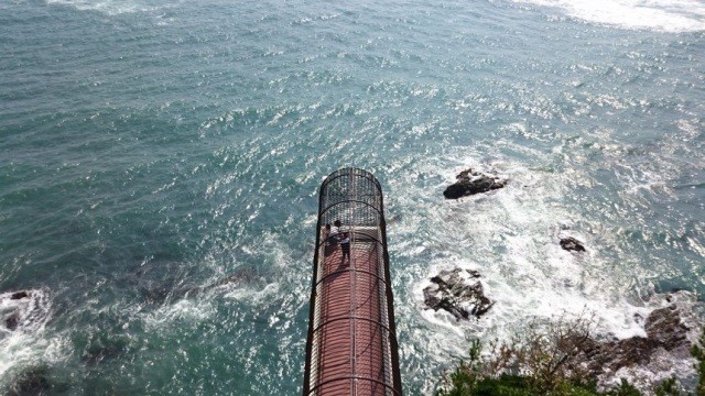 みさきこうえん(いわきまりんたわー・しおみだい)(いわきをだいひょうするうみのぜっけいすぽっと)県立三崎公園内に立つ高さ59.99mの展望台。いわき市市制施行20周年を記念し、昭和60年8月1日オープン。ガラス張りの展望室の青と白のコントラストが遠目にも映えます。海抜106メトールの開放感抜群のスカイデッキからは太平洋といわき一円が見渡せる絶好のビューポイント。潮見台は丘からせり出した場所に設けられ、太平洋の大迫力の景色が堪能できる絶景スポットです。屋上からの景色も最高ですが、海に突き出た展望ポイントでは、海を真下に潮風を受けながら、ちょっとしたスリル感が味わえます。
