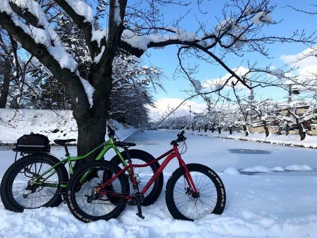 冬は極太タイヤのFATバイクを使って雪面を走ることができます。