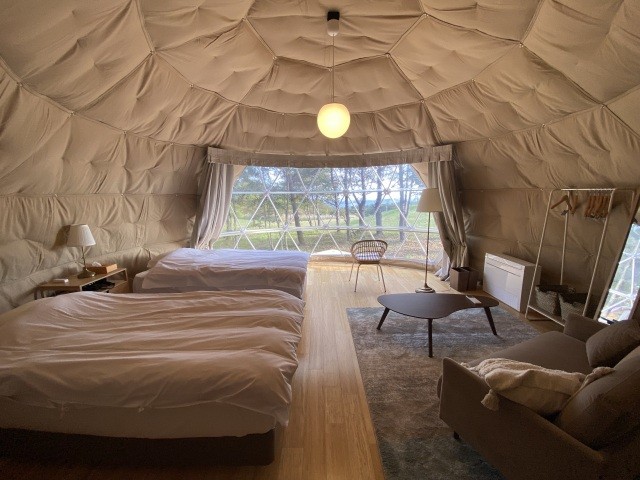 いずみぴーくべーす仙台駅から車で約45分、泉中央駅から約30分のIZUMI PEAK BASEは2022年7月にオープンしました。泉ヶ岳水神温泉の温浴施設とコテージやグランピングがあり、仙台市街地を見下ろせる絶景とともにゆったりとした時間と開放的な空間をご提供します。晴れた朝には美しい朝陽に心が洗われる一日の始まりを是非御体験ください。