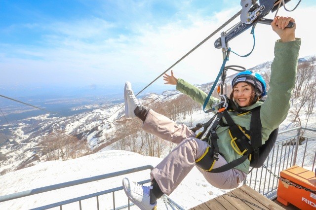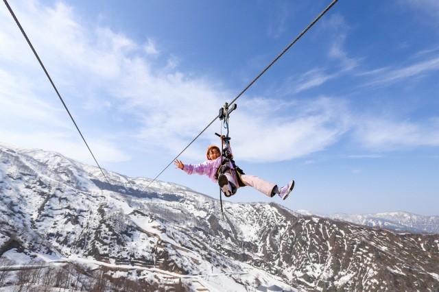 ロッテアライリゾートのジップツアーは全長1,501m、標高950mのスタート地点から一気に下り降ります。その高低差はなんと240m!