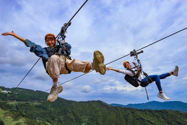 【ロッテアライリゾート】全長約1,501mを飛ぶ空中の旅へ出発!ジップツアー