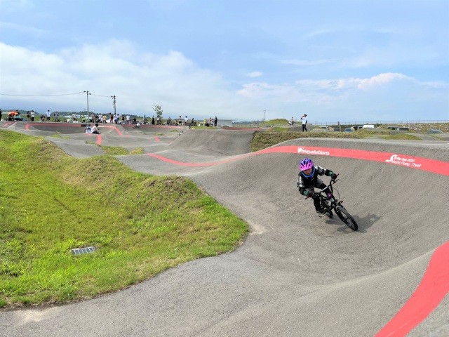 パンプトラックは路面にある様々な大きさの起伏を上手に利用することでペダルを漕がずに加速して周回できるコースが特徴で