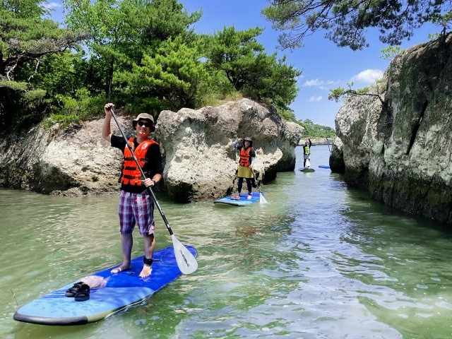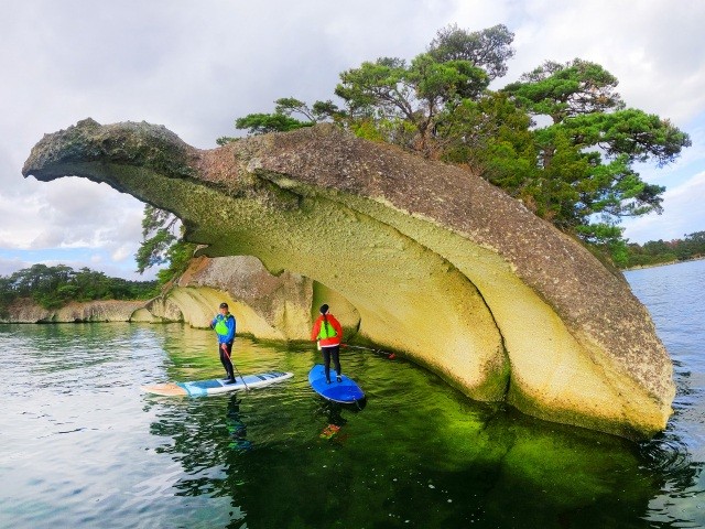 まつしまさっぷぷらん日本三景のひとつに数えられる松島は、七ヶ浜町・塩釜市・松島町・東松島市に跨っており、湾内外にある大小260余りの島々からなっています。その独特の地形のおかげで波は穏やかで風の影響も受けにくく、まさにSUPには最適の環境。そしてなによりその景観の美しさは他に類を見ません。