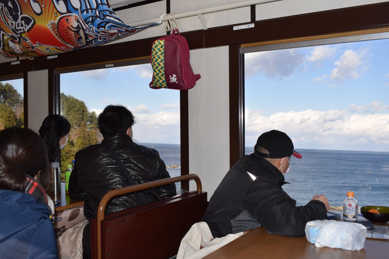 こたつで暖まりながら、車窓からは冬の三陸の素晴らしい眺めを、車内では美味しい味覚を堪能できるとっても楽しい列車です。