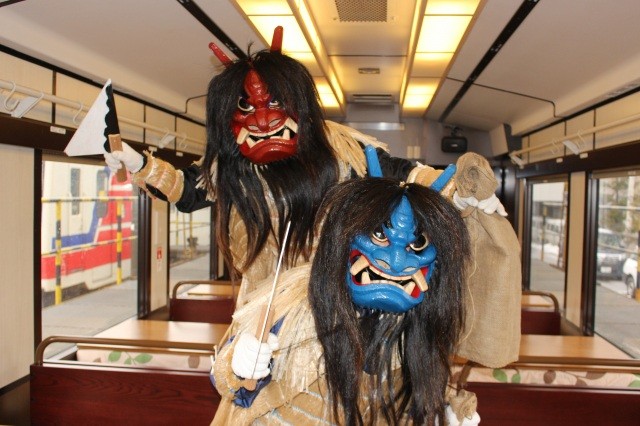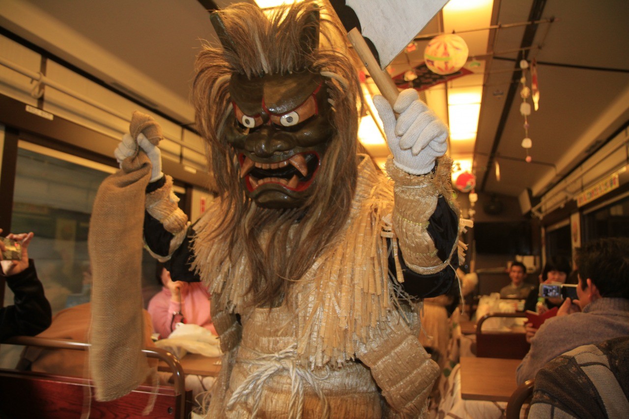 また、三陸鉄道アテンダントが乗車して案内を行うほか、どこかで車内に「なもみ(秋田のなまはげに似た鬼)」が登場するそうです。