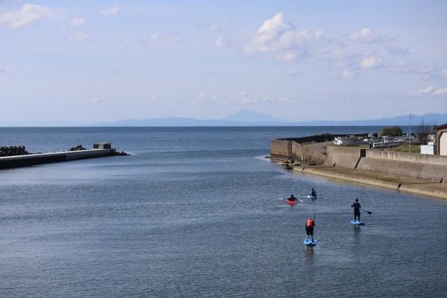 河口域をスタート地点に、カヤックに乗って陸奥湾に出ると、岩木山や八甲田山などの青森の山々のパノラマの景色が広がります!
