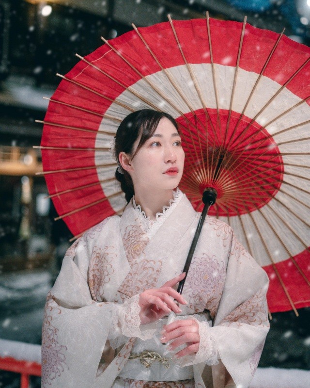 ③ プロカメラマンによる撮影。和傘等小道具などもこだわることができます。