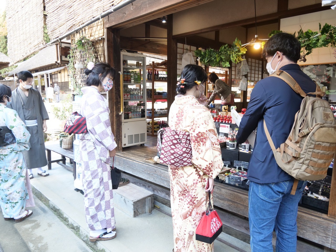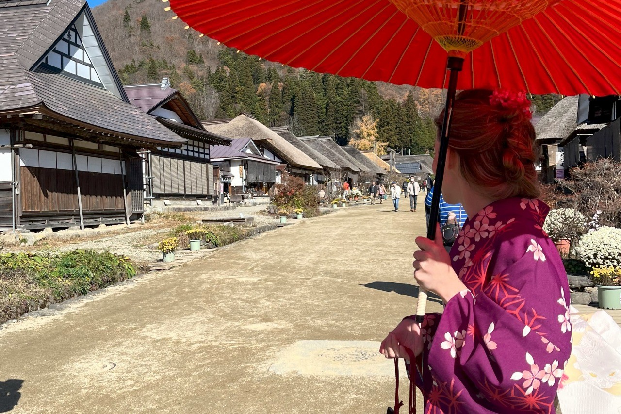 おおうちじゅくたいむすりっぷ&きものきつけたいけん江戸時代の参勤交代の宿場であり、今もその原形が残る街並みを、着物を着て写真撮影などもしながら散策しよう。大内宿内茶屋石原屋で抹茶とようかんを堪能、立ち並ぶお土産屋さんでは、お土産を選びながら漬物や日本酒の試飲も楽しめます。街並み展示館では江戸時代の庶民の生活について学ぶことができます。着物を着る機会は日本でもあまり多くありません。雄大な自然と歴史的な雰囲気を楽しみながら、是非タイムスリップを経験してください!