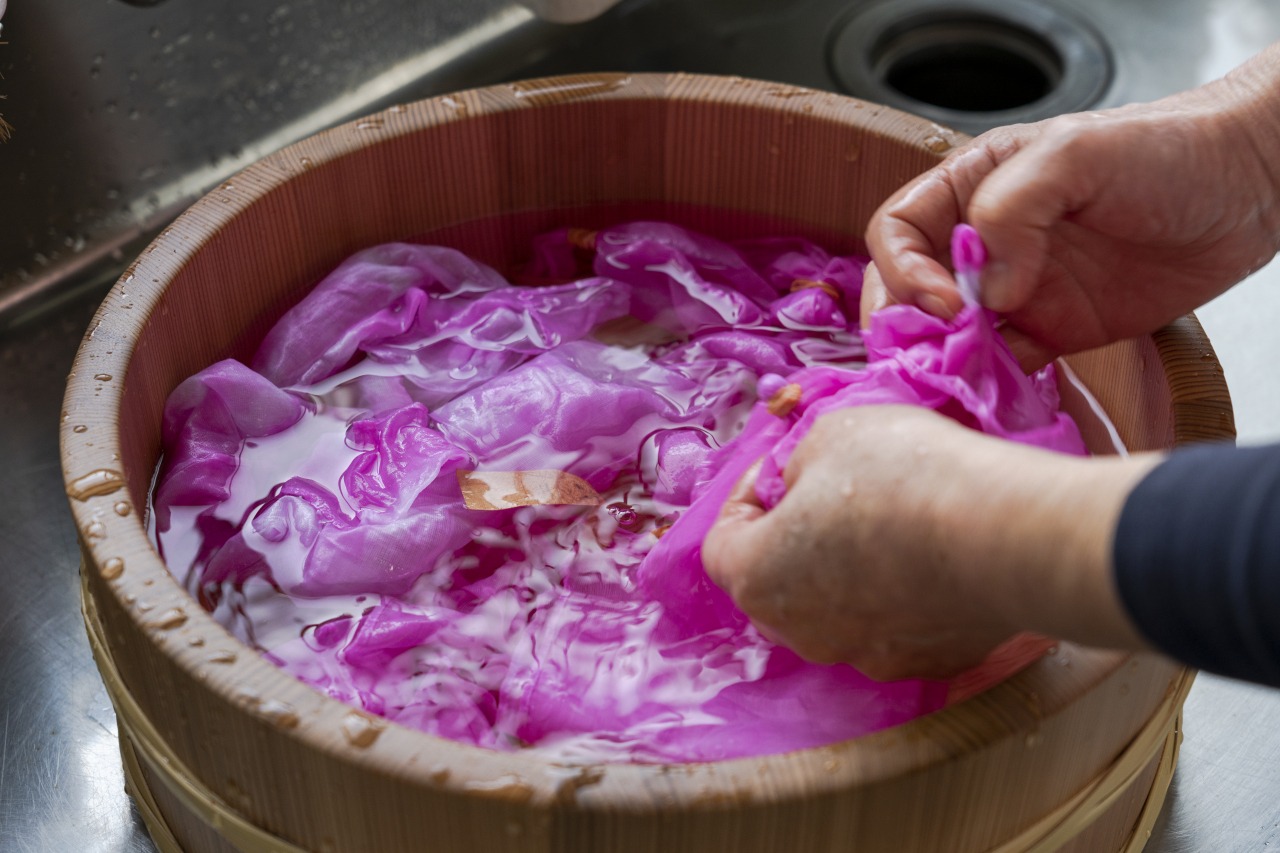 米沢で作られる織物は「米沢織」と呼ばれ、自然由来の染料を使用していることが特徴です。植物を染料としているため、優しい風合いと色彩の豊かさが 魅力。中でも、代表的な「紅花染め」は、紅花といわれるキク科の植物を染料としたもので、紅花を天然染料として使用しているのは日本だけと言われています。その特徴的な赤色は「ジャパン・レッド」とも言えるでしょう。紅花染めを得意とする「株式会社新田」では、米沢織、紅花染めの歴史について当主からお話を聞くことができます。