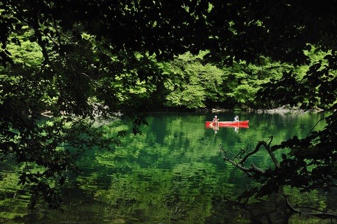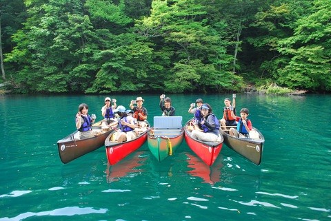 とわだこかぬーつあーまずはカヌーの漕ぎ方をガイドが丁寧にレクチャー。その後に、お客様自身がカヌーを漕いで、大自然の十和田湖へと出発します。ガイドが別カヌーに乗ってサポートいたしますので、初心者でも安心。ツアーの途中では秘密のスポットに上陸して、美味しいスイーツと本格的な紅茶のティータイムで休憩します。