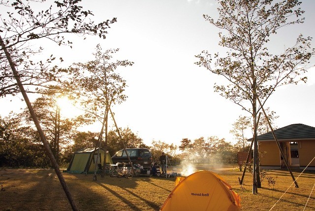 つつじのもりきゃんぷじょう階上岳の七合目付近にあるキャンプ場(水洗トイレ完備)。夜は炊事棟でアウトドアクッキング、満点の星空の下で眠れるかもしれません。