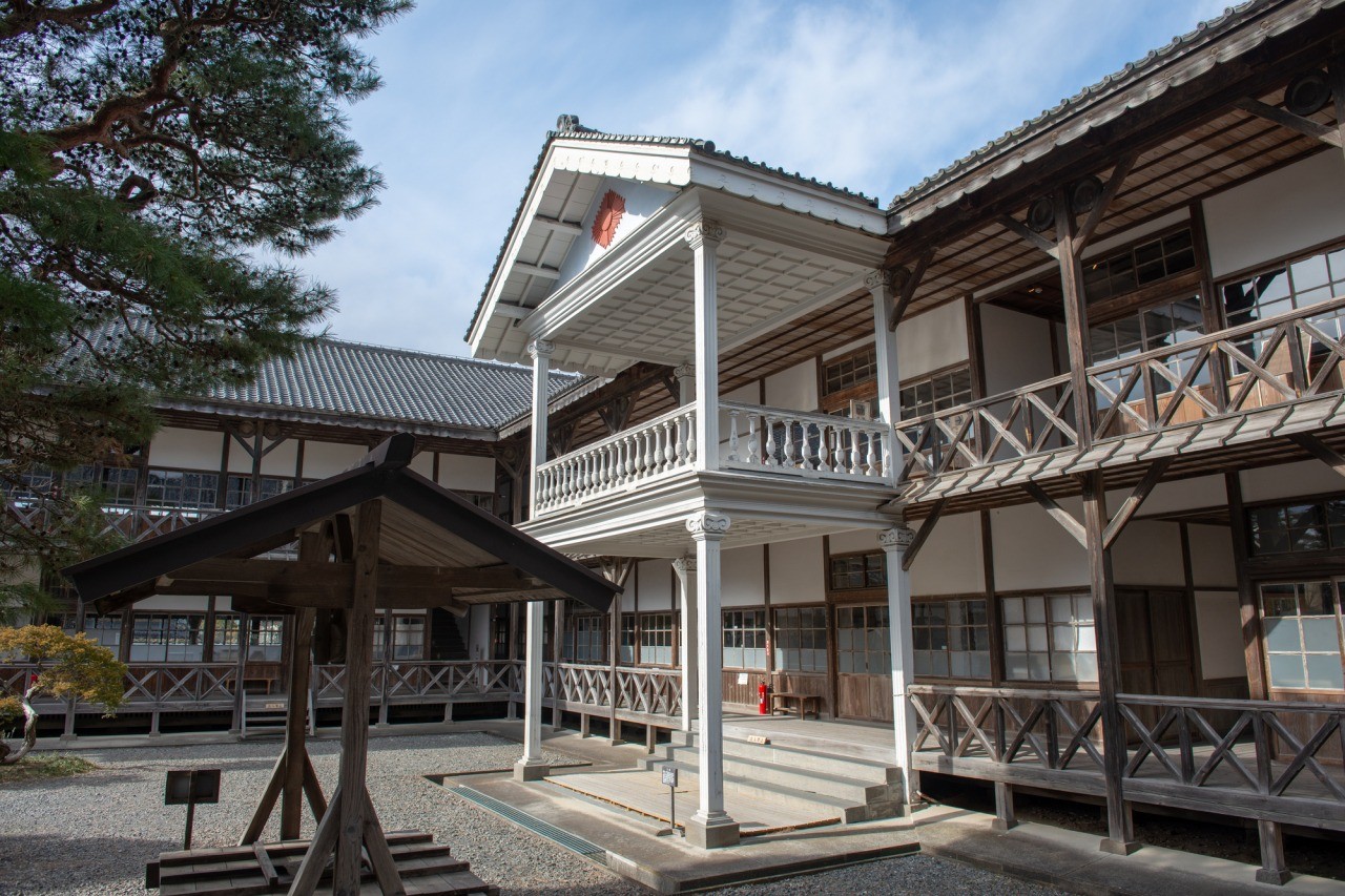 とよままちきょういくしりょうかん(きゅうとよまこうとうじんじょうしょうがっこう)「みやぎの明治村」と呼ばれる登米町(とよままち)。宮城県にあり、明治時代(1868年–1912年)を思わせる街並みが保存されていることから、そう呼ばれています。