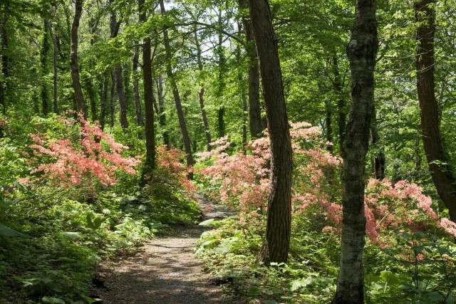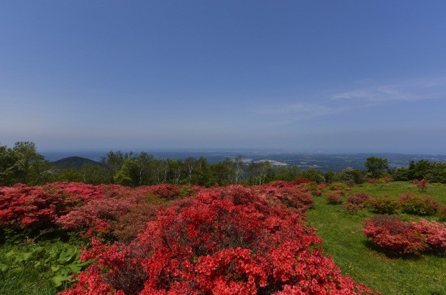 8合目にある「大開平」は山つつじが群生している名所。車道の最終地点であり、ここから山頂までは、ゆるやかな散策路が整備され、30分程度で登ることができます。5月下旬から6月上旬のはしかみ臥牛山まつりの頃には満開となり、多くの観光客で賑わいます