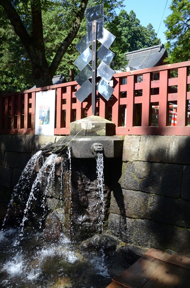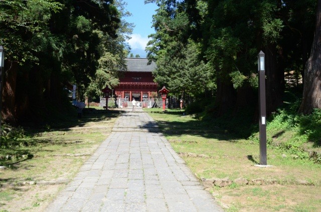 社頭一の鳥居から真正面に岩木山頂奥宮を拝することができる境内の形態はたいへん珍しく、老杉の緑に朱塗りの荘厳な社殿群が映える参道をご神水の清流のせせらぎを聞きながら、お参りすることができます。