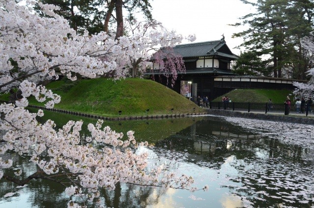 弘前公園には、52種、約2,600本の桜が植えられており、「日本三大桜の名所」に数えられる桜の名所です。樹齢140年を超える弘前公園最長寿のソメイヨシノ、ライトアップされた夜桜、桜の花びらが濠一面を埋め尽くす「花筏(はないかだ)」など、見どころも多く、毎年4月下旬から5月上旬に開催される「弘前さくらまつり」には、県内外から多くの人々が訪れます。