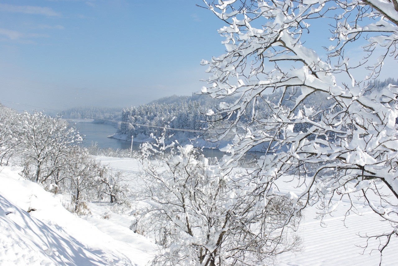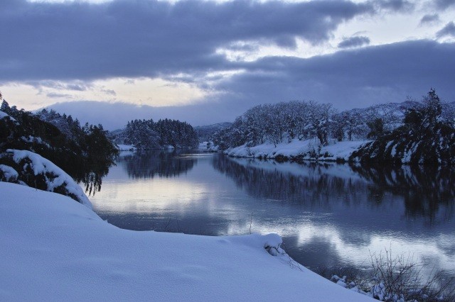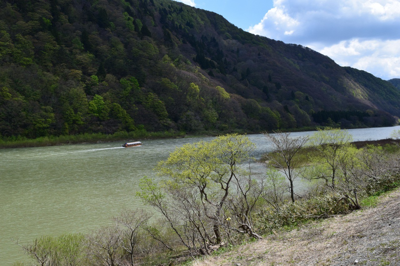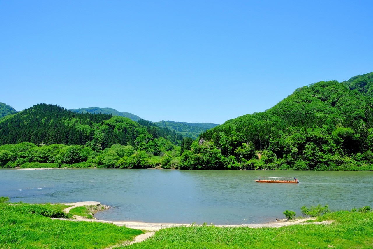 春のみどころは5月初旬の山桜。色鮮やかなピンク色の山桜を船上から愛でるお花見というのも一興です。初夏のみどころは5月下旬~6月上旬の新緑。清々しい風と鮮やかな緑を楽しんでください。秋のみどころは10月下旬~11月下旬の紅葉。両岸の山々が紅葉でオレンジや黄色に染まり、色とりどりの紅葉が水面に映ります。冬のみどころは12月下旬~2月の雪景色。水墨画のようなわびさびを感じさせる風景が広がります。冬場は足を温められる「こたつ船」が運行。こたつ+熱燗の舟旅は雪国ならではの醍醐味です。