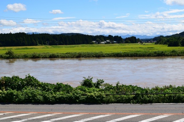 もがみがわ俳聖・松尾芭蕉の「五月雨を/あつめてはやし/最上川」の句で知られる最上川。芭蕉自身が舟に乗り、激流をくだった経験を詠んだもので「梅雨の雨が最上川に集まりものすごい勢いで流れている」様子が表現された躍動感のある句。最上川は日本三大急流のひとつでもあります。とはいえ、点在する部分的な急流を除けば、川全体の流れはゆるやか。ゆったりとした舟くだりを楽しめる川です。
