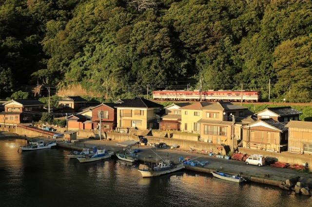 レストランや特産品販売コーナーなどがある笹川流れ夕日会館から眺める夕日は感動もの!ぜひご覧ください。